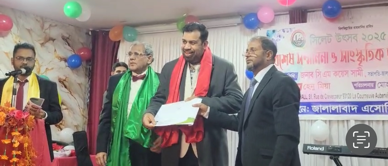 প্যারিসে বর্ণ্যাঢ্য আয়োজন আর জাকজমকের মধ্যে দিয়ে জালালাবাদ অ্যাসোসিয়েশন ফ্রান্সের আয়োজনে সিলেট উৎসব বিশেষ সম্মাননা ও সাংস্কৃতিক অনুষ্টান অনুষ্ঠিত হয়েছে ।